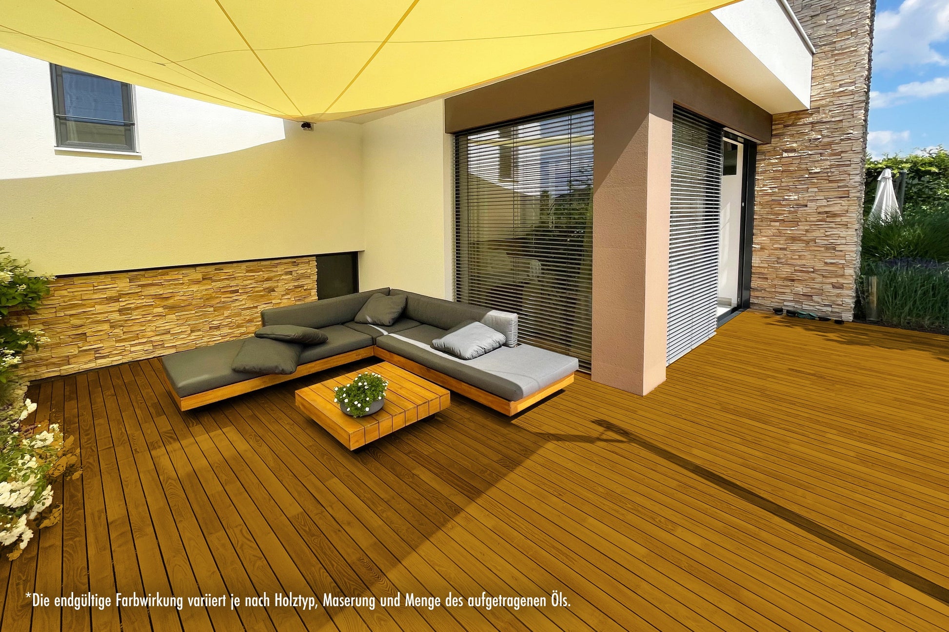 RIBOL wood protection oil, color: "TEAK LIGHT" for hardwoods (e.g., robinia, oak, teak, etc.), No. 569-068-075, 0.75 liters (for max. 17 sq m)