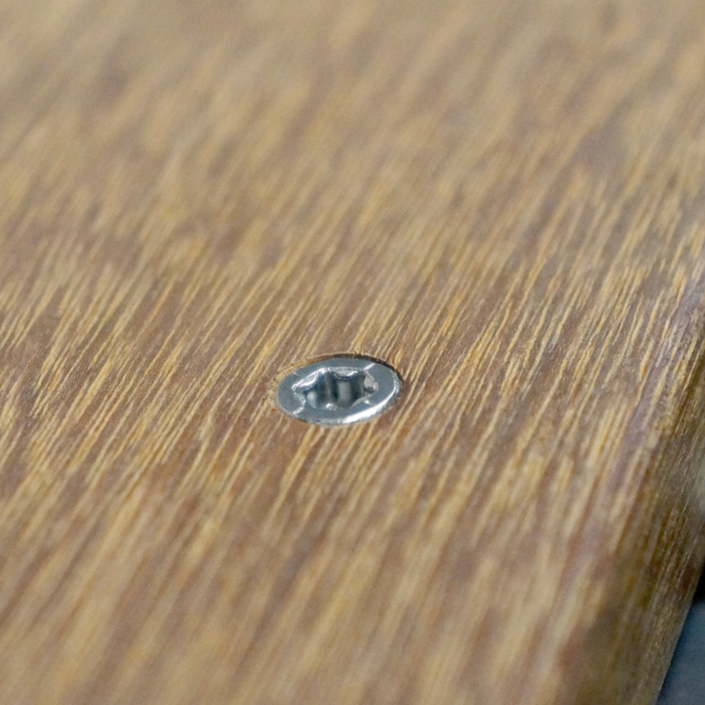 L'acier inoxydable martensitique A2 (référence 1.4567) utilisé allie une haute résistance à la corrosion à une résistance optimale à la flexion. Ceci garantit la résistance des vis aux charges dynamiques dues au gonflement et au retrait du bois sur le long terme. L'entraînement TX25 assure une transmission de couple maximale tout en maintenant un maintien sûr, pour un assemblage aisé, même en production de série.