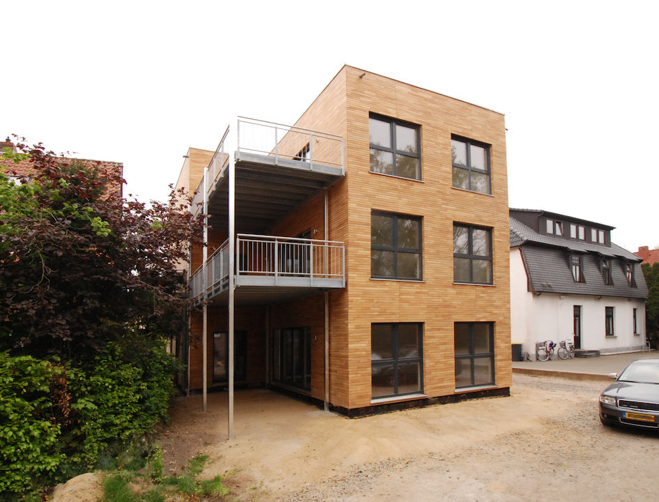 Fassadenbrett Robinie TIGA STANDARD, Trapezprofil, vertikal keilgezinkt, kammergetrocknet, Restfeuchte 12-16% (+/-2%), Resistenzklasse 1-2 nach EN D 350-1/2, 15 Grad angeschrägt, gehobelt, mit teilweise geringer Überlänge gekappt