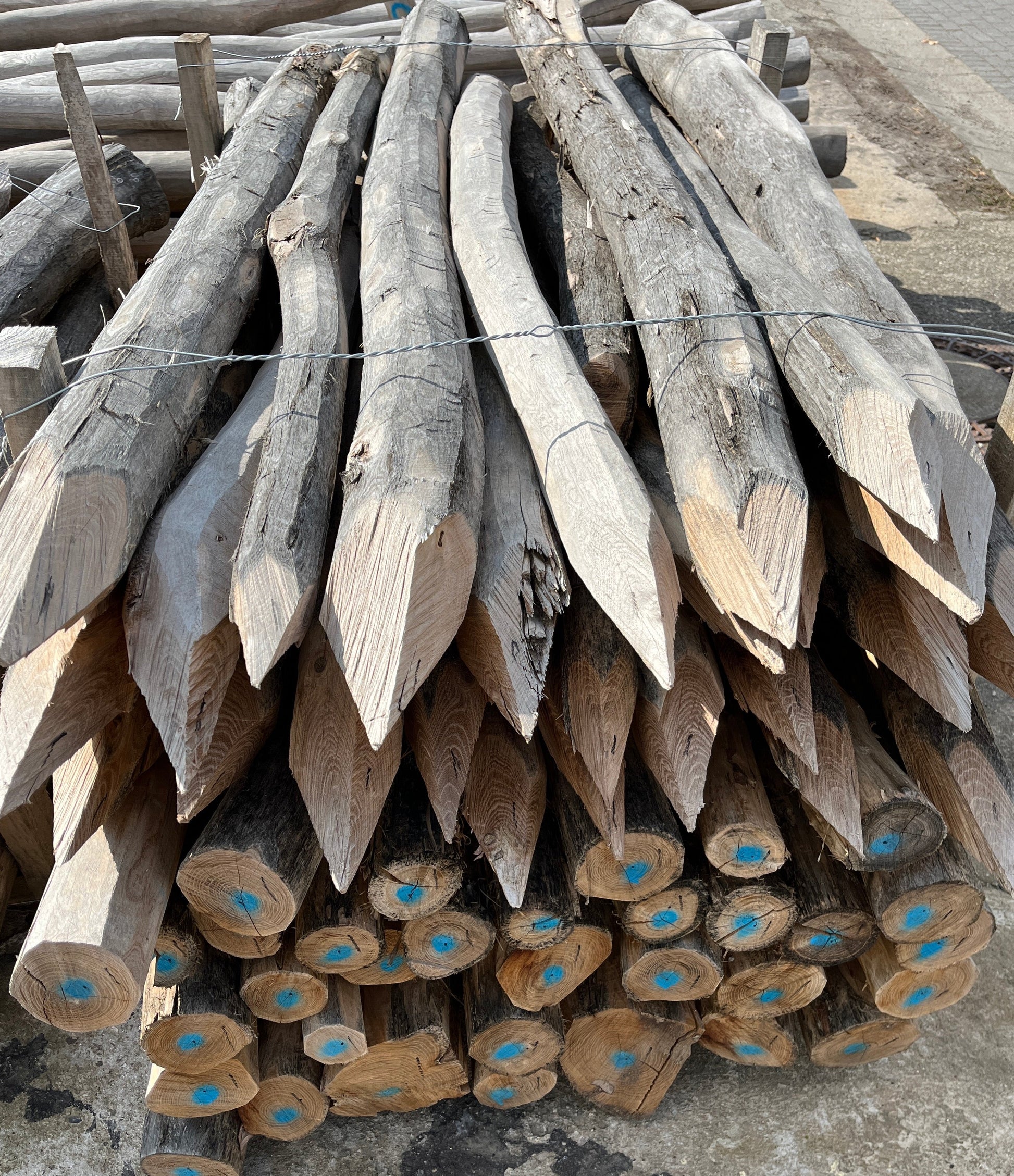 Pfahl gespitzt, grob entrindet, 100-140 mm