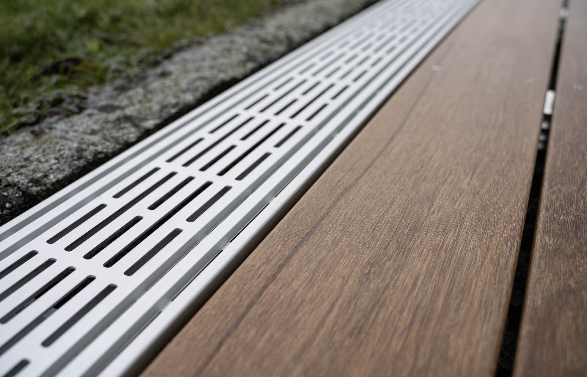 Die Entwässerung erfolgt über die Profilausnehmungen und wird direkt in den Untergrund abgeleitet. Verschmutzungen durch Spritzwasser an angrenzenden Objekten wie z. B. Hausfassaden, Türen usw. werden deutlich reduziert. RELO V entspricht mit der Breite von 150 mm der Flachdachregel.