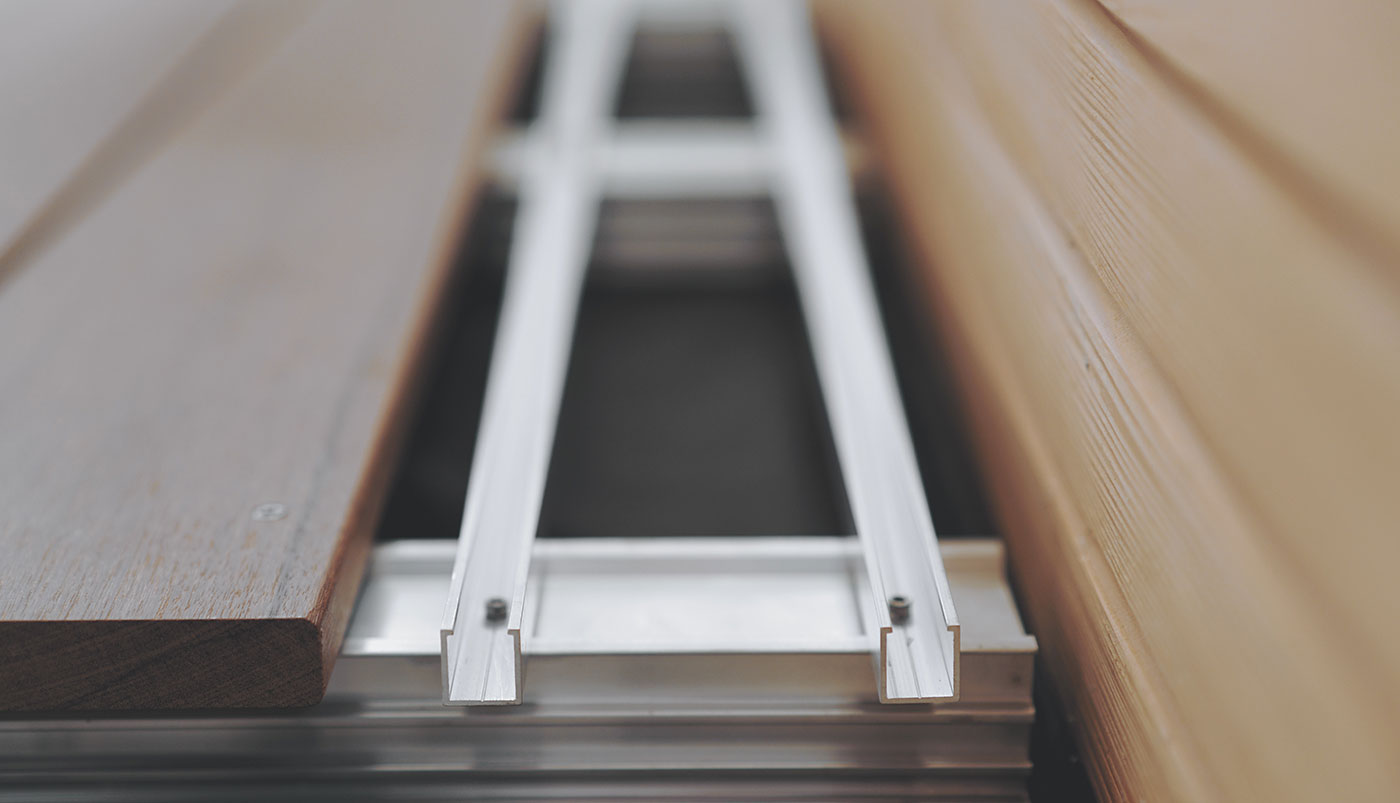 Das aus Aluminium gefertigte Profil mit einer hochwertigen Oberfläche, integriert sich perfekt in jede Terrasse und schafft einen harmonischen Übergang zu den angrenzenden Objekten.