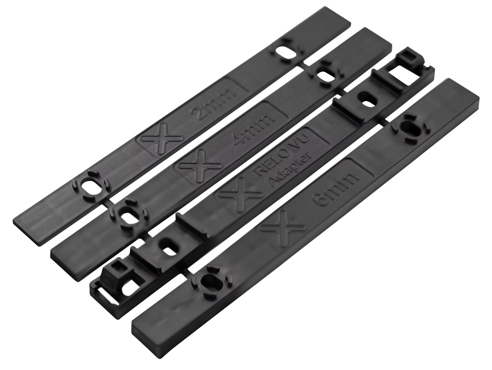 Das Set besteht aus einem 6 mm hohen Klick-Adapter sowie drei zusätzlichen Unterlegern in den Stärken +2 mm, +4 mm und +6 mm.